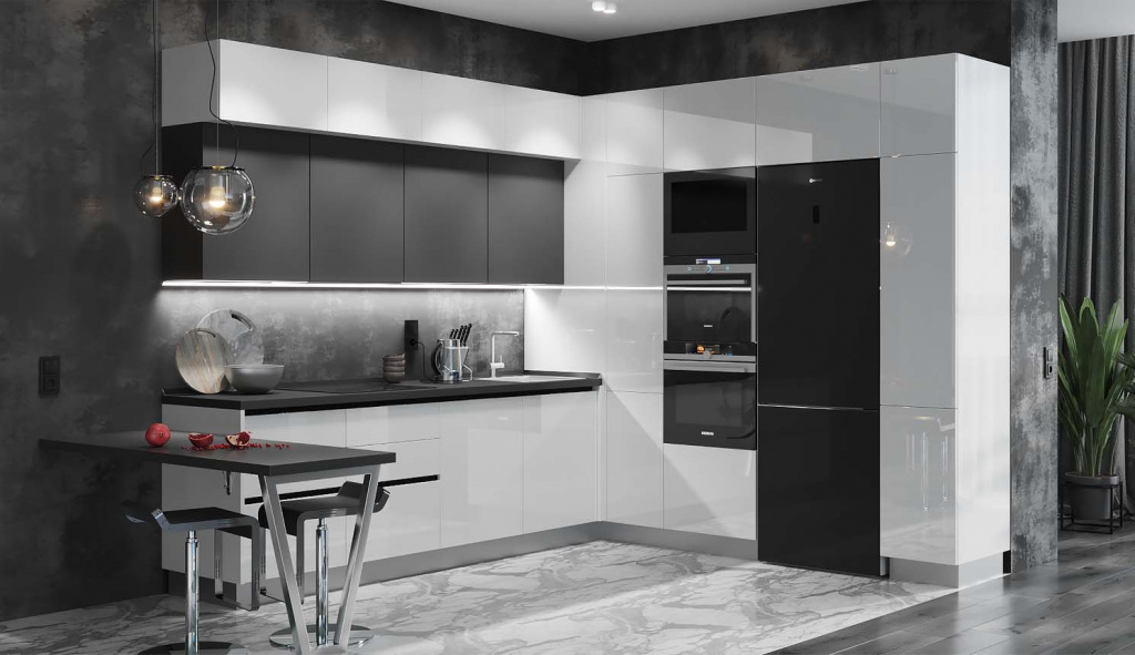 Такие фасады имеют идеально ровную и очень привлекательную поверхность благодаря технологии изготовления. Покрытые лаком фасады не боятся ультрафиолета, влажности и перепадов температур. Однако не стоит допускать частого нахождения их под прямыми солнечными лучами, т.к. цвет фасадов может несколько измениться. Фасады МДФ, окрашенные глянцевой эмалью не коробятся и не отслаиваются, зато при механических воздействиях возможны появления сколов краски.