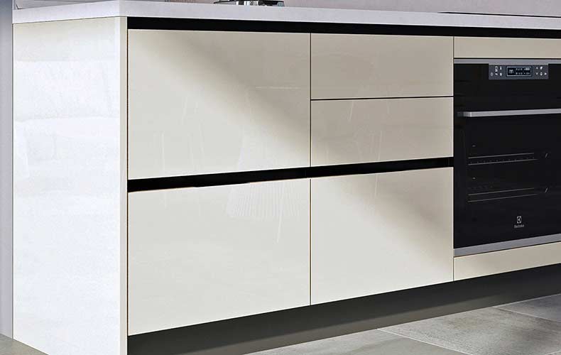 Сковороды и кастрюли, как самая тяжелая посуда, хранятся в нижних тумбах гарнитура. Это не только снижает нагрузку на стену от навесных шкафов, но и позволяет легко доставать тяжелые сковородки, а также предохраняет от травм при случайном падении, например, чугунного вока.