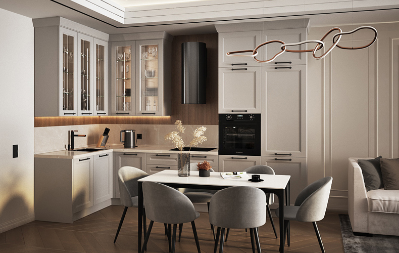 Если вы задумались об интерьере в неоклассическом стиле, приходите на бесплатное проектирование вашей будущей кухни в любой салон «Стильные Кухни и Интерьеры».