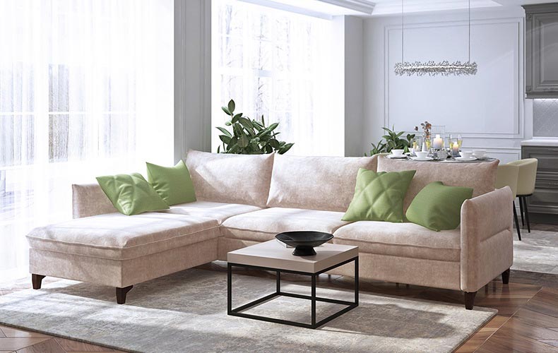 Выбирая какого цвета подобрать диван, не забывайте и о цветовой температуре. Оттенки одного и того же цвета бывают как теплыми, так и холодными. Например, салатовый — теплее, а изумрудный — холоднее.