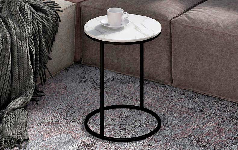Круглые компактные столики удобной высоты могут стоять не только в гостиной, но и в спальне, в гардеробной. Подстолье из металла в трех цветах и самые разные варианты столешницы, предлагаемые в разных материалах толщиной от 12 до 20 мм, позволяют создать такой столик идеально под весь остальной интерьер.