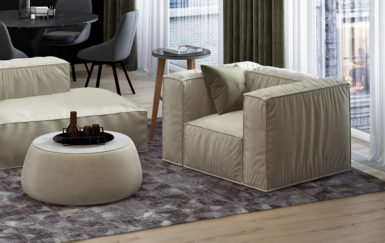 - Модульность. Кресло может быть не одно, а несколько, и комбинируя их друг с другом, можно получить диван. Модульность и вариативность придают интерьеру динамику.