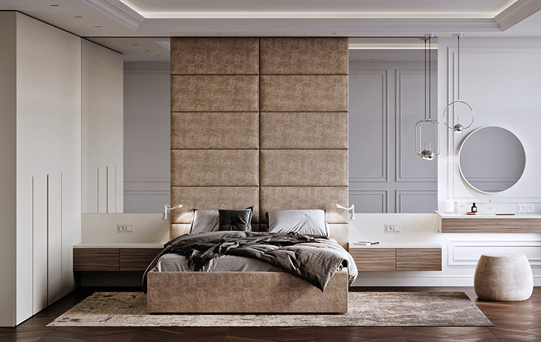 - Фактурные ткани, игра текстур. В моде тактильно приятные, рельефные поверхности и уютные, теплые ткани обивки, которые способствуют расслаблению.