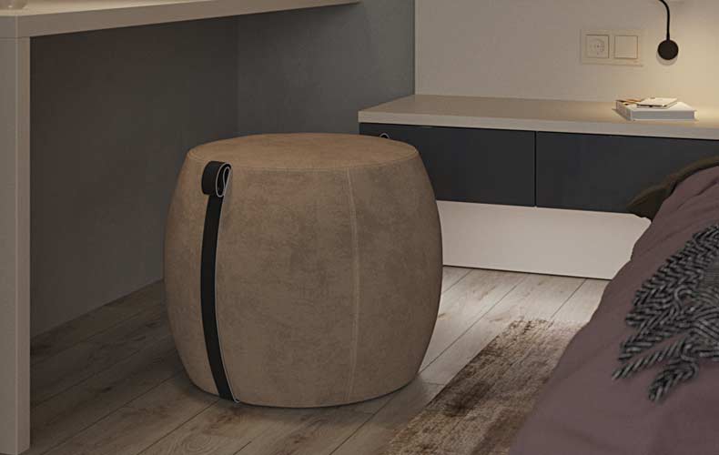 В детскую комнату лучше ставить пуфы без металлических деталей, например, «Трюфель» или «Грассо». В гостиной большой пуф «Трюфель» может заменить журнальный столик, если снабдить его столешницей.