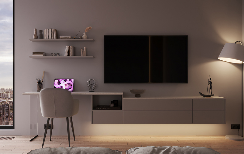 Шкаф — идеальное решение для тех, кто не хочет «спотыкаться» взглядом о провода, зарядки, документы, косметические флаконы и т.п.