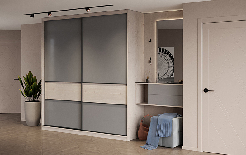 — Самый очевидный пример совмещения открытых полок и закрытых шкафов — любая прихожая. Чаще всего открытые полки предназначены для хранения головных уборов, повседневной обуви и одежды, перчаток, сумочек. Обязательно есть полочка, куда при входе можно бросить телефон и ключи. Закрытый шкаф проектируется для верхней одежды, хранения обуви, сезонных вещей.
