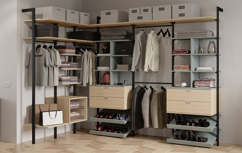 Сейчас открытые системы хранения — очень популярное решение в мебельных гарнитурах самого разного назначения, от гардеробных до встроенных в нишу витрин в гостиной. Открытые полки дарят интерьеру легкость и стиль, но только в том случае, если они аккуратны и эстетичны.