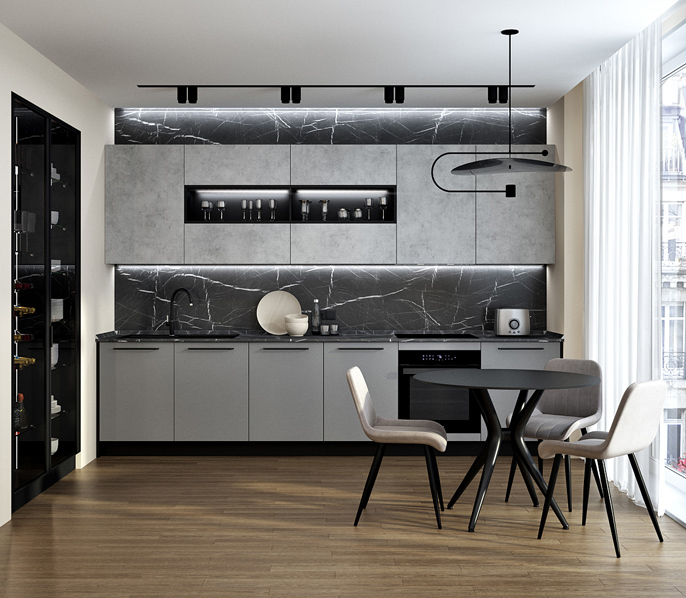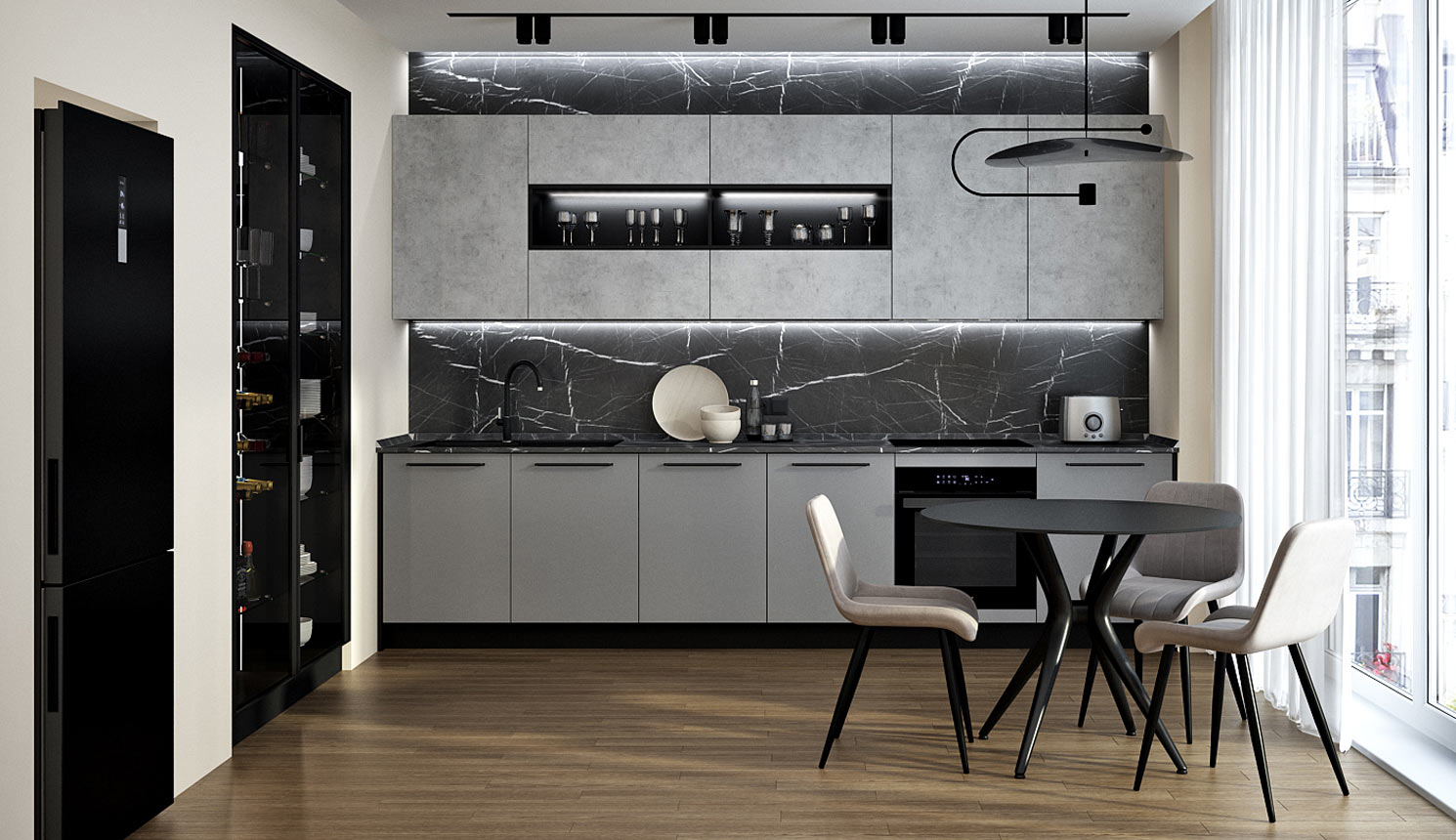 Лофт — это минималистичный стиль с сохранением в помещении промышленных деталей, например, кирпичной кладки и труб коммуникаций. Оригинальный и дерзкий, этот стиль в то же время очень функционален и практичен, с обилием удобных зон хранения. В оформлении используются фактуры под металл, бетон, грубо обработанное дерево. Оттенки мебели — натуральные и холодные, с эффектом искусственного состаривания. Кухня в стиле лофт отлично подходит творческим натурам, экспериментаторам и путешественникам. Подробнее о кухнях в стиле лофт читайте в статье.