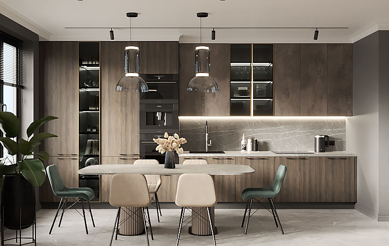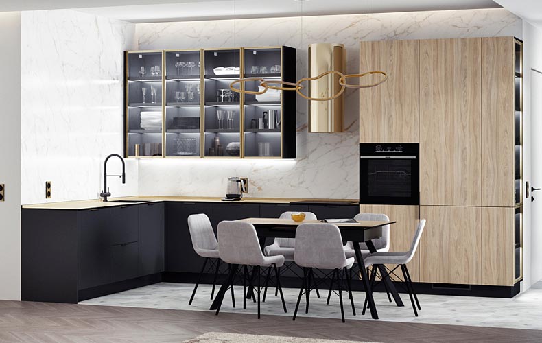Продукция фабрики выполняется в классических и современных стилях. Вы можете реализовать все свои идеи благодаря разнообразию фасадов и фурнитуры. Классические и современные кухни могут быть дополнены бытовой техникой.