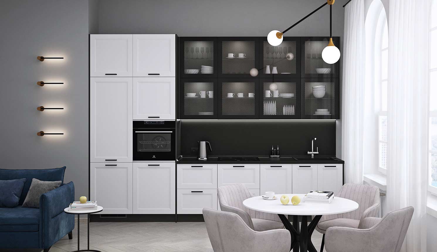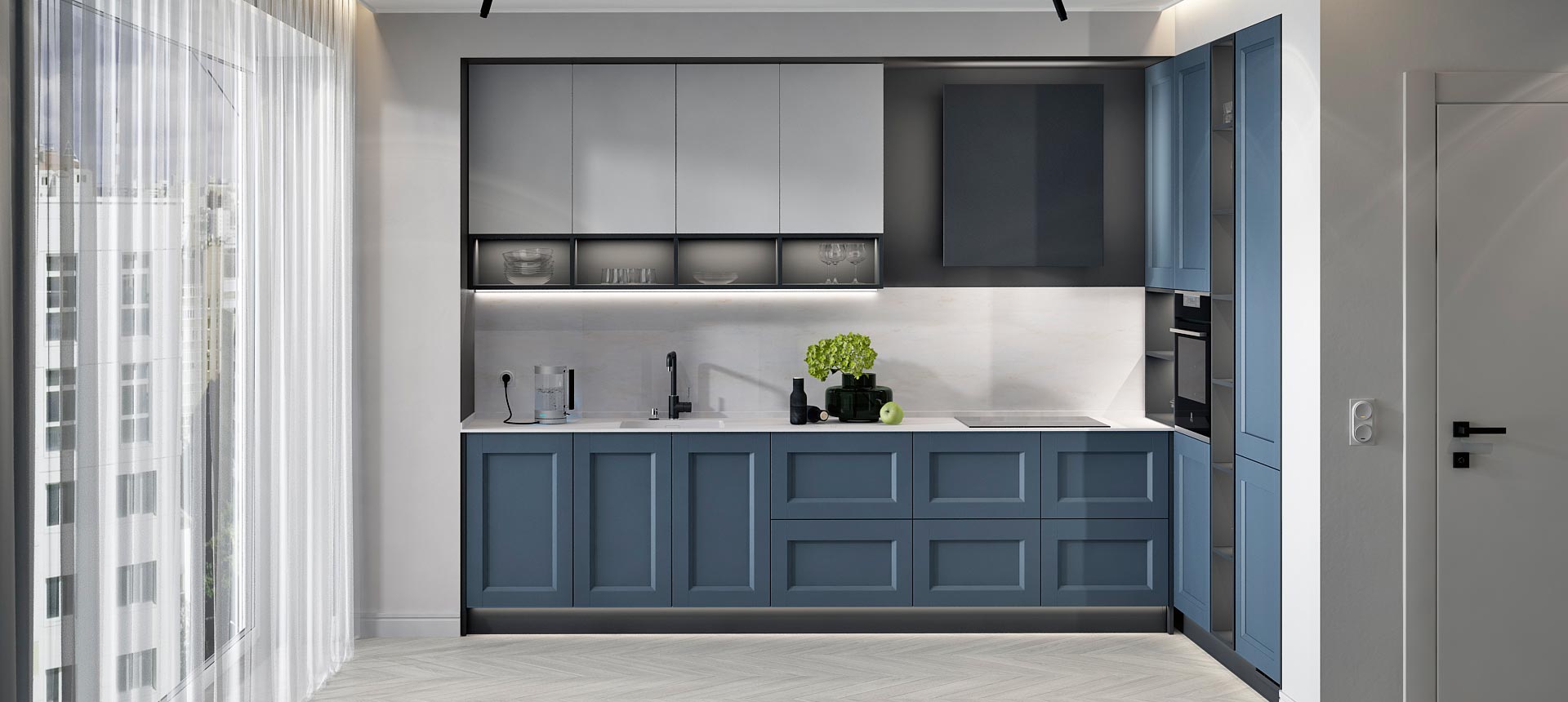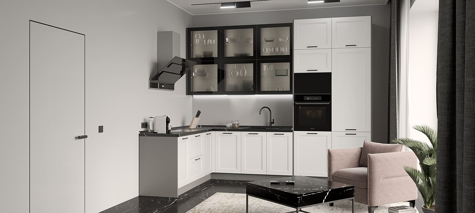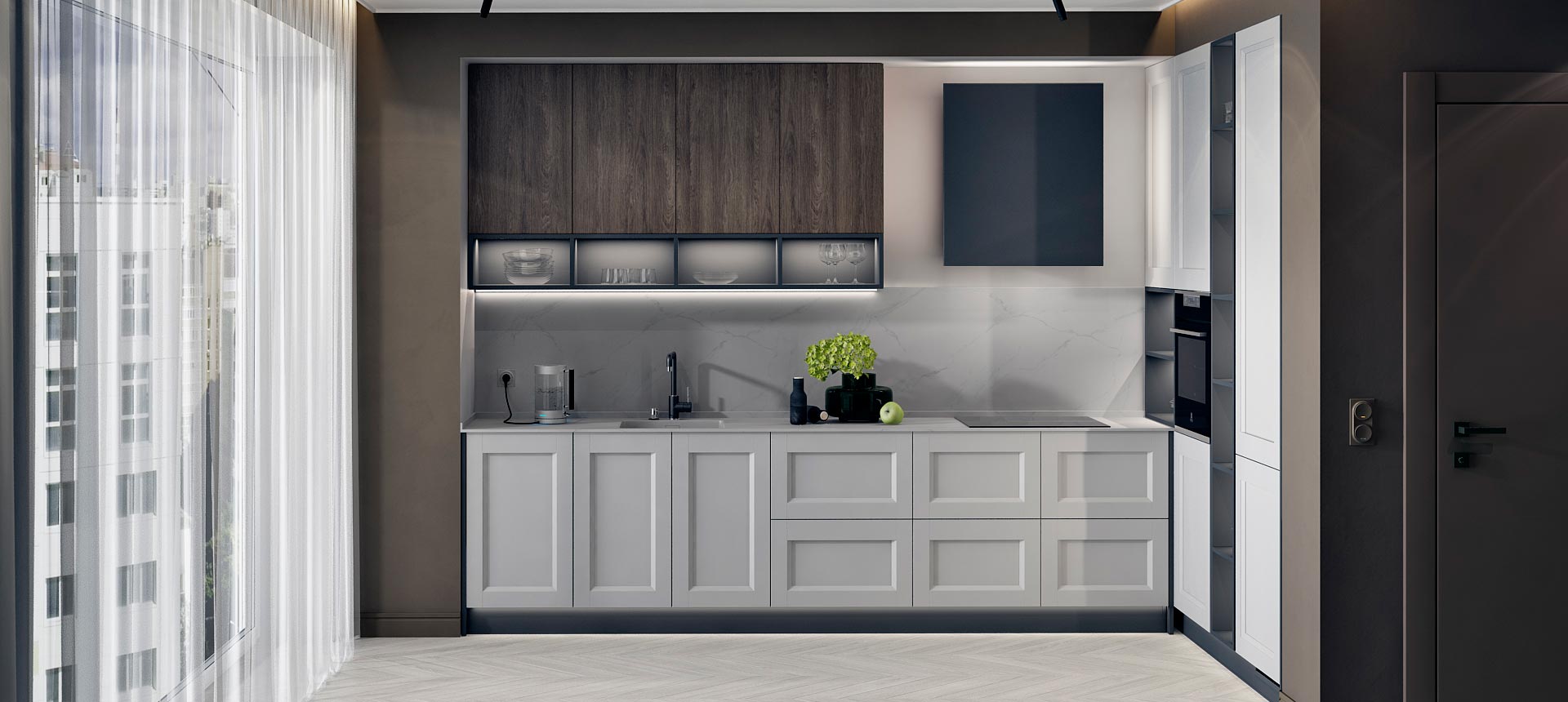 Кухня в стиле лофт и вместительный шкаф для новостройки в Санкт-Петербурге