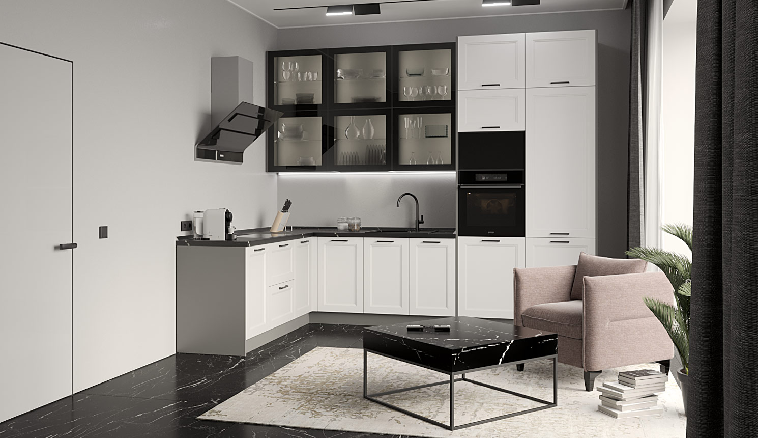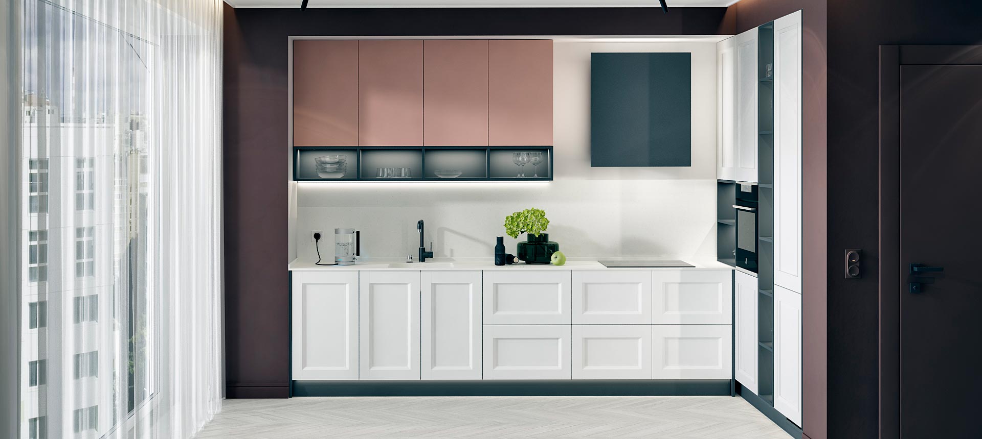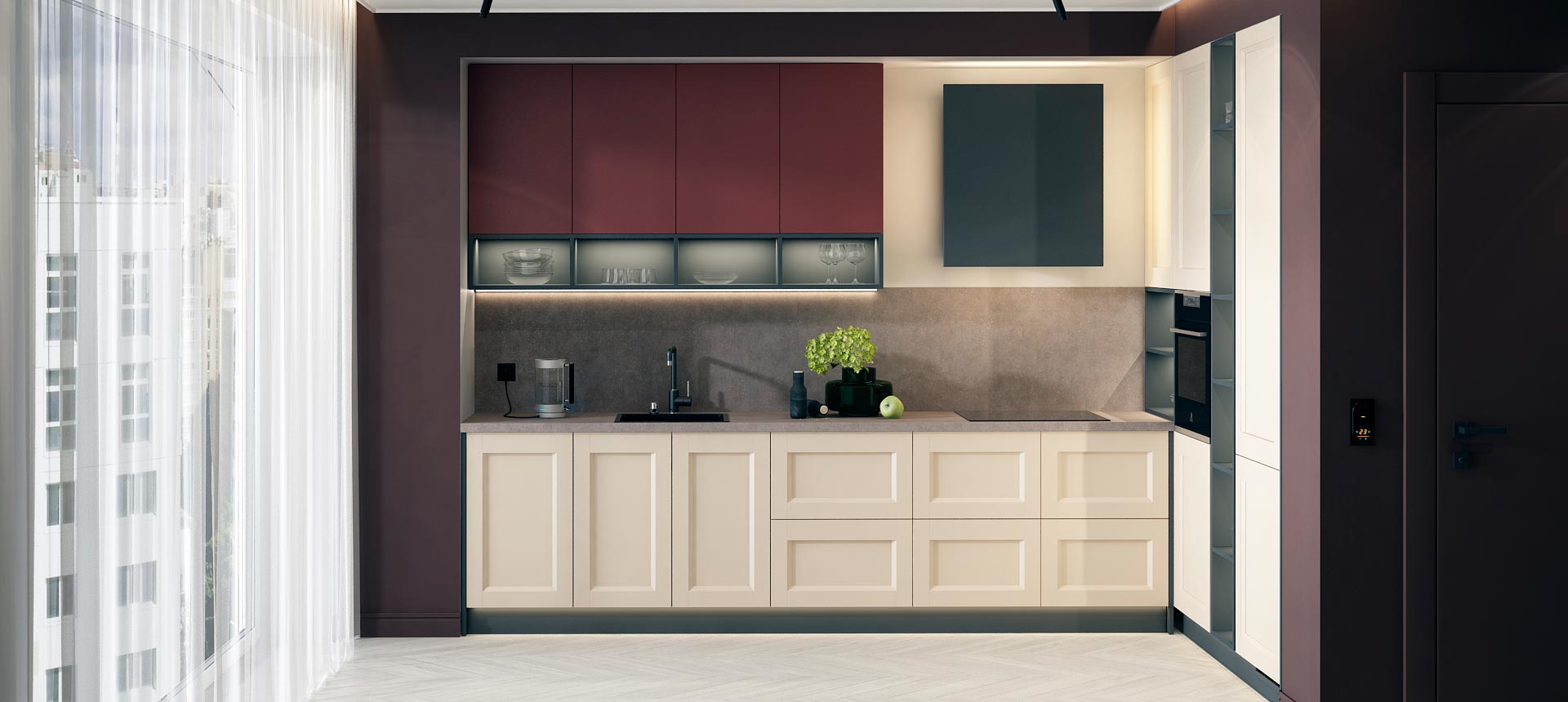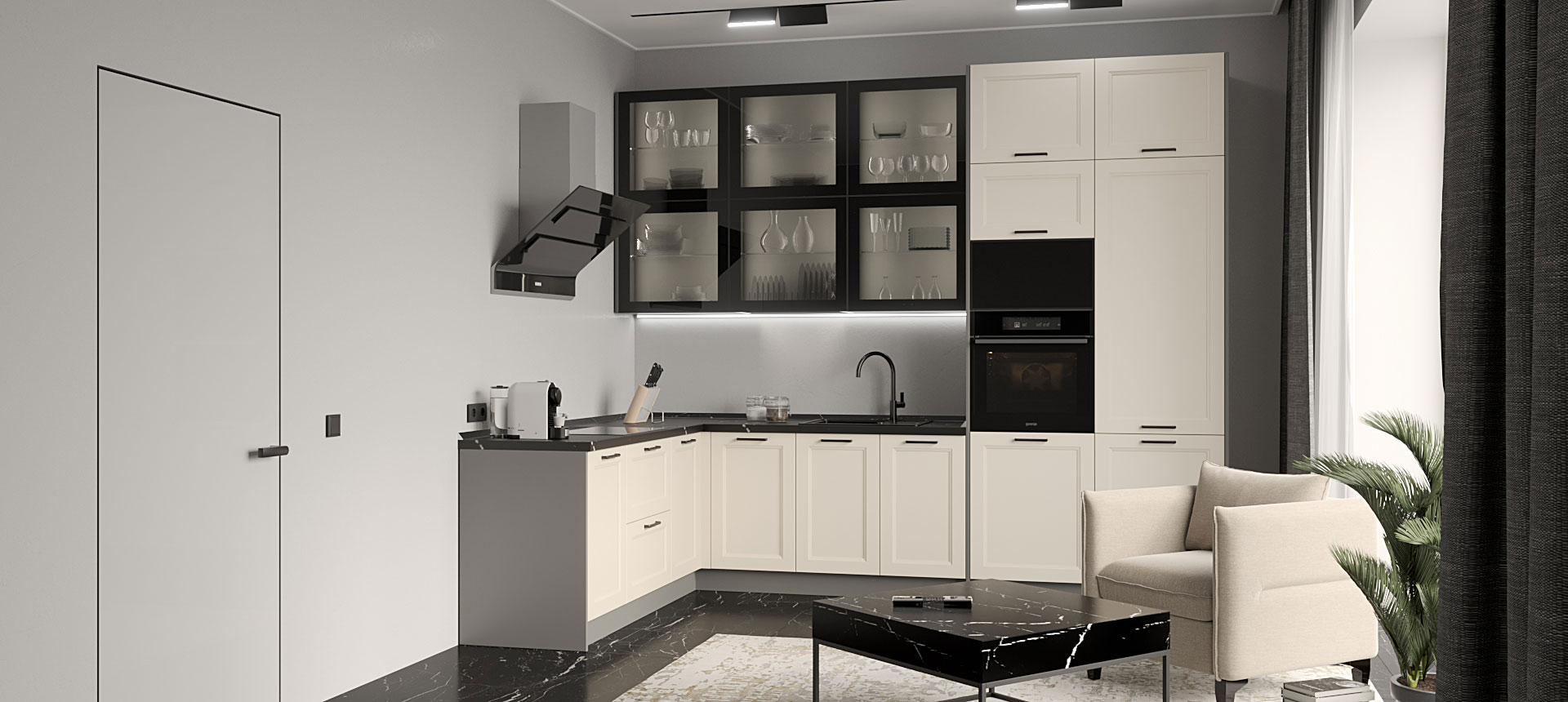 Кухня в стиле лофт и вместительный шкаф для новостройки в Санкт-Петербурге