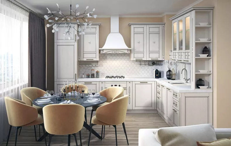 Продукция фабрики выполняется в классических и современных стилях. Вы можете реализовать все свои идеи благодаря разнообразию фасадов и фурнитуры. Классические и современные кухни могут быть дополнены бытовой техникой.