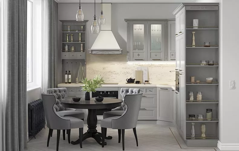 Кухонный гарнитур Оливия 2 выполнен в синих тонах и идеально подходит для интерьеров в классическом стиле. В отделке доминируют рамочные фасады из массива и шпона дуба. Декоративные вставки с фрезеровкой и фурнитура в ретро-стилистике подчёркивают принадлежность к классике. В качестве изящного акцента – патина на фасадах в коричневых тонах. Угловая конструкция кухни позволяет рационально использовать свободное пространство. Гарнитур оснащён встроенной техникой, различными шкафами и системами хранения. Для создания уютной атмосферы предусмотрена подсветка рабочих зон.