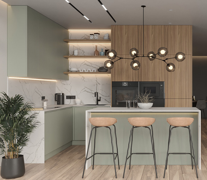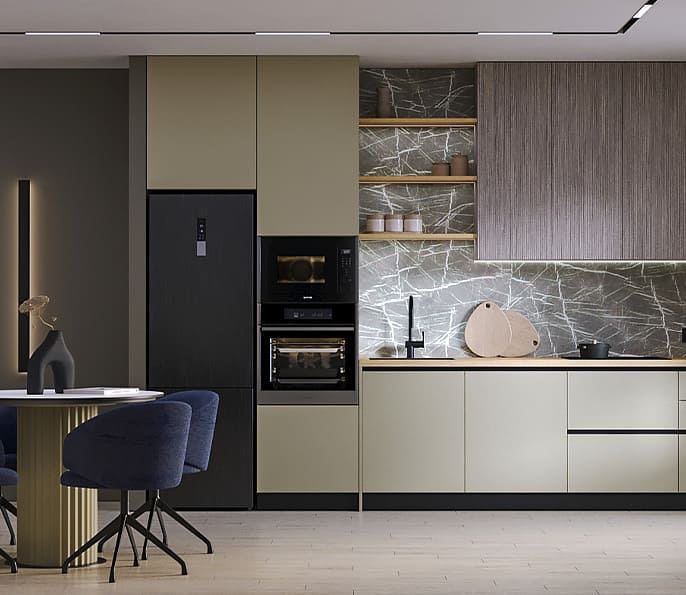 Наша компания создает кухни, которые идеально вписываются в интерьер любой квартиры, дома, офиса. Кухонный гарнитур в г. Подольск можно заказать по особому проекту, если из имеющихся моделей вам ничего не удалось подобрать. Мы предлагаем мебель на заказ в классическом, кантри, hi-tech и других стилях.