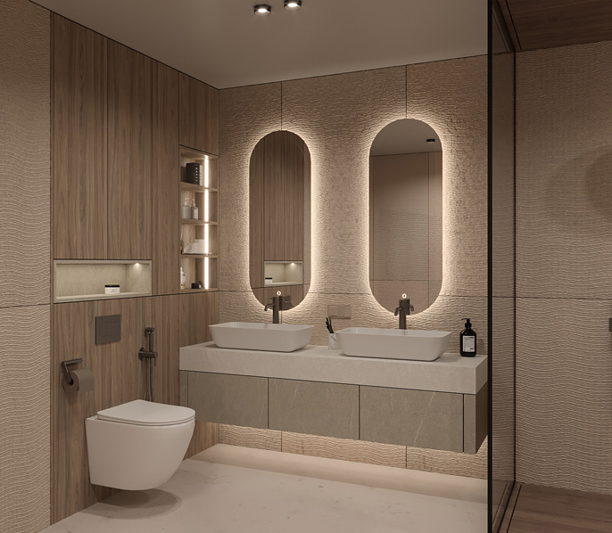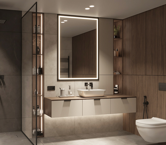 Мы специализируемся на производстве мебели для ванных на заказ, поэтому стоимость изделия будет рассчитана индивидуально.
