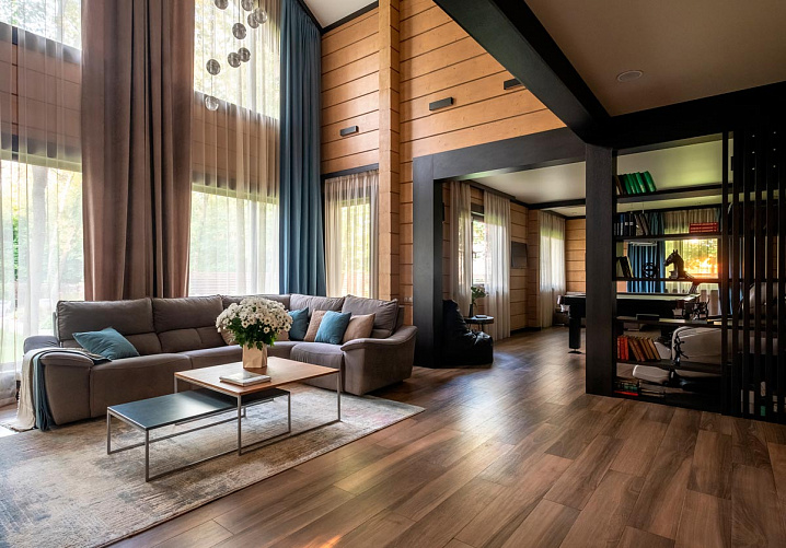 Заказчики этого проекта, любители яхтенного спорта и длительных морских путешествий, мечтали о комфортном загородном доме, как лучшем месте на земле, куда они будут с удовольствием возвращаться. Обязательным условием было наличие SPA-зоны с купелью и бильярдной. Для того, чтобы грамотно сделать внутреннюю разводку электрики в доме из клееного бруса, одного архитектурного проекта не достаточно.