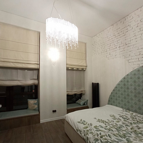 Пространство квартиры-лофта интересно тем, что при небольшой площади комнат они очень высокие. В связи с этим шкафы сделаны так, что верхняя часть их приспособлена для вещей долгосрочного хранения. Чтобы высокие шкафы не казались массивными, использованы на одном и том же изделии панели разного цвета и фактуры. Для расширения пространства зоны прихожей, шкаф сделан с поворотом и зеркальными панелями, чтобы пространство зрительно казалось больше.