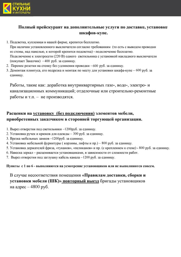 Правила доставки, сборки и установки комплекта товаров (кухни)PDF / 0.3 Mb